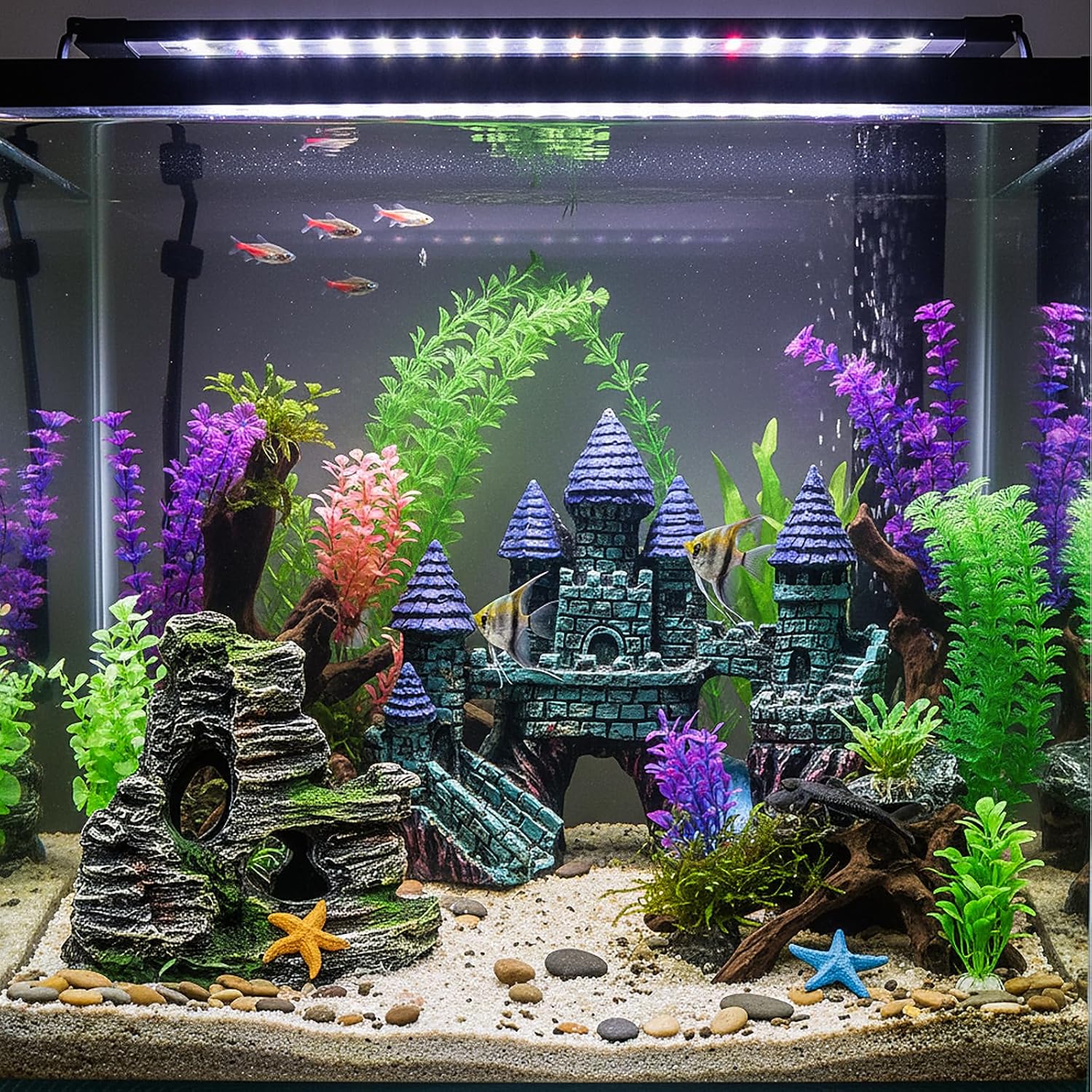 Die Schwimmfunktion ermöglicht es kleinen Fischen, mit dem Schloss zu interagieren und bietet gleichzeitig ein hervorragendes Versteck. Bringen Sie leuchtende Farben in Ihr Aquarium. Die Aquariendekoration besteht aus zwei Teilen.