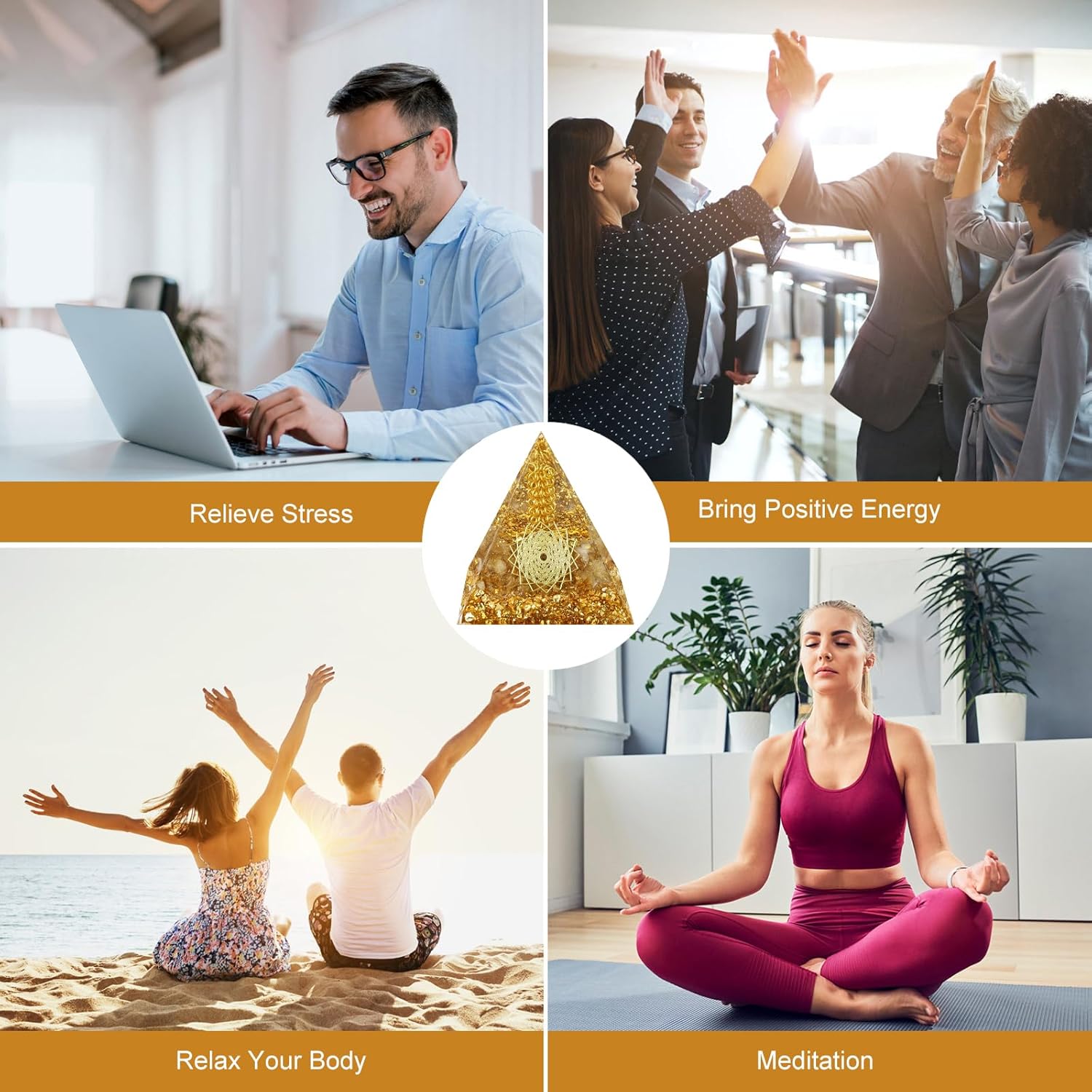 About us Orgone HopeSeed Crystal Shop has always been committed to providing our customers with high quality natural crystals and healing stones. We never use artificial crystals, and insist on sourcing high-quality natural crystals to make crystal crafts. We are so confident that once you see the quality and craftsmanship of our crystals, this will be the start of your amazing Orgone crystal collection! Orgonite Crystal Pyramid Open Heart, Mind and Spirit by it's healing power. Can turn the negative energy into positive energy, enrich your spirit energy, make you feel the inner peace and bring you wealth, health, and success, and used in for Reiki Healing practices, yoga meditation kit and enjoy the positives Vibes. It's a good energy pyramid for home and office decoration, helps to filter and balance the energy field in our environment, protect from unfortunate events, and make wise decisions.